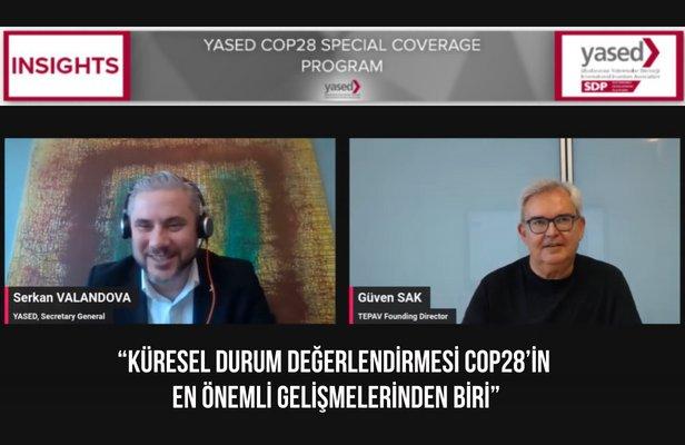 Uluslararası Yatırımcılar Derneği (YASED) tarafından hazırlanan COP28 özel yayın programına katılan Türkiye Ekonomi Politikaları Araştırma Vakfı (TEPAV) Kurucu Direktörü Güven Sak, COP sürecinin hız kazandığına dikkat çekerek “Ülkelerin iklim taahhütlerindeki ilerlemeyi ölçen Küresel Durum Değerlendirmesi’nin (Global Stocktake) ilk kez yapılacak olması COP28’in en önemli gelişmelerinden biri” dedi.